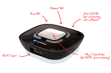 El SharePod es una solución única de emparejamiento para conectar de forma inalámbrica cualquier fuente HDMI en un entorno de wePresent.